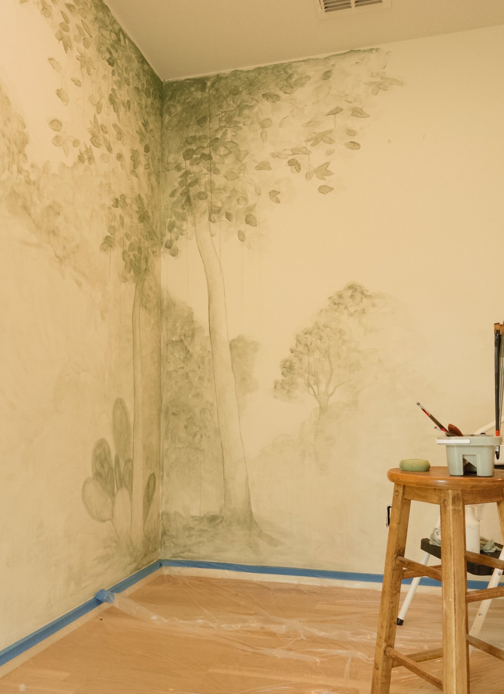 Each mural is painted in person at your location, with Mel dedicating 2-3 days per wall or roughly 6-7 business days for an entire room. She works 3 to 6 hours a day, allowing the layers to build with care and intention as your mural comes to life, stroke by soulful stroke.